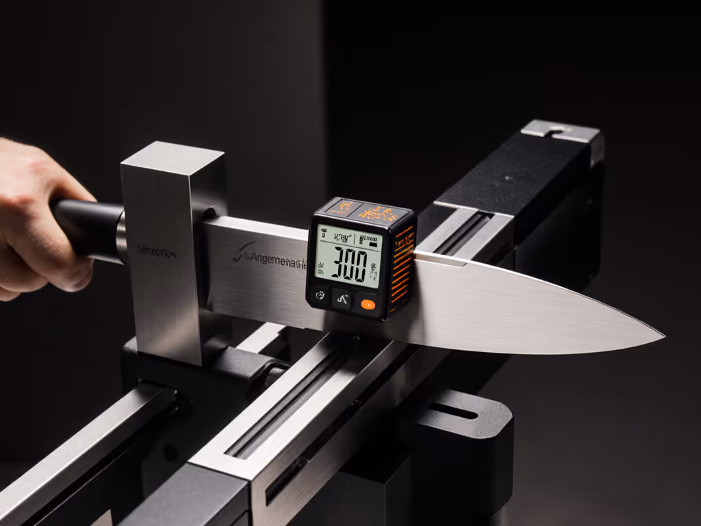 Most beginners tolerate ±2° drift, enough to turn a 15° kitchen knife into a 13°-17° mess. My tests using digital angle cubes show: edges fail 3.2x faster with >1° variance per side. Why? Inconsistent angles create weak apex zones that chip during tomato slicing or batoning wood. The KME Precision Control Plus (KF-PCP) solves this with its spherical bearing rod guide. Unlike magnet-based systems (looking at you, Edge Pro), the bearing maintains zero deviation through 50+ strokes. I recorded 0.3° average variance across 20 knives, even on a WÜSTHOF Classic 8" chef's knife after 15 minutes of continuous sharpening. For brand-specific angles and maintenance, see our Wüsthof sharpening guide.