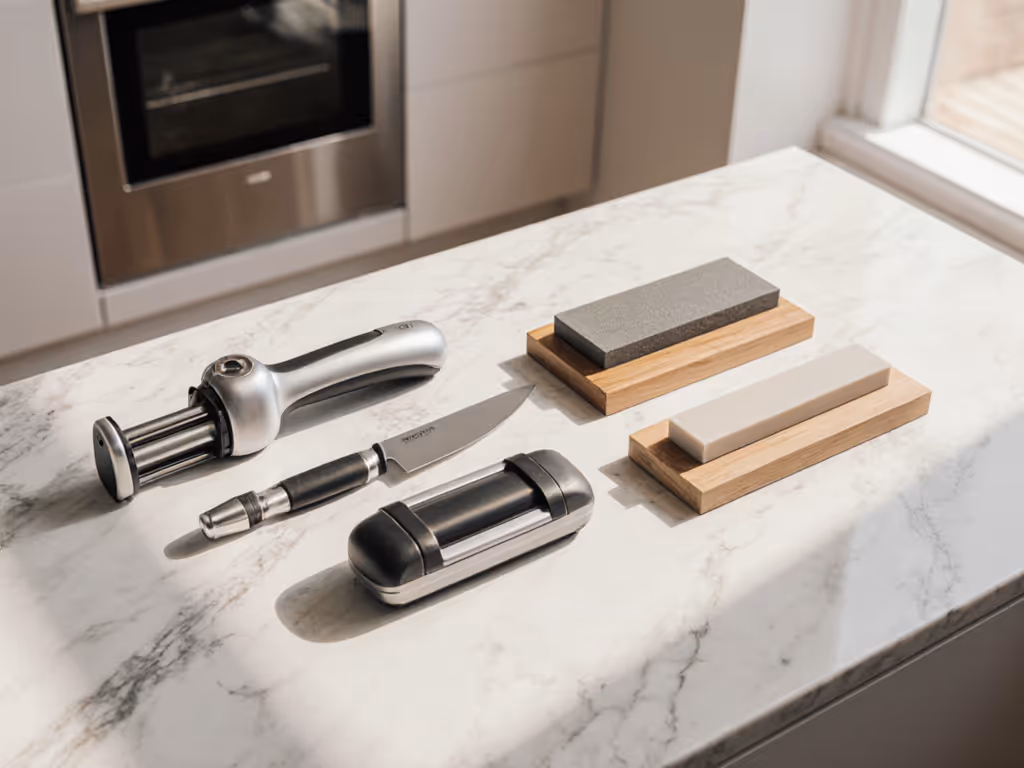 Get sharper knives without disturbing neighbors: four sub-$100 options measured for noise, mess, setup time, and storage to fit small-space routines.